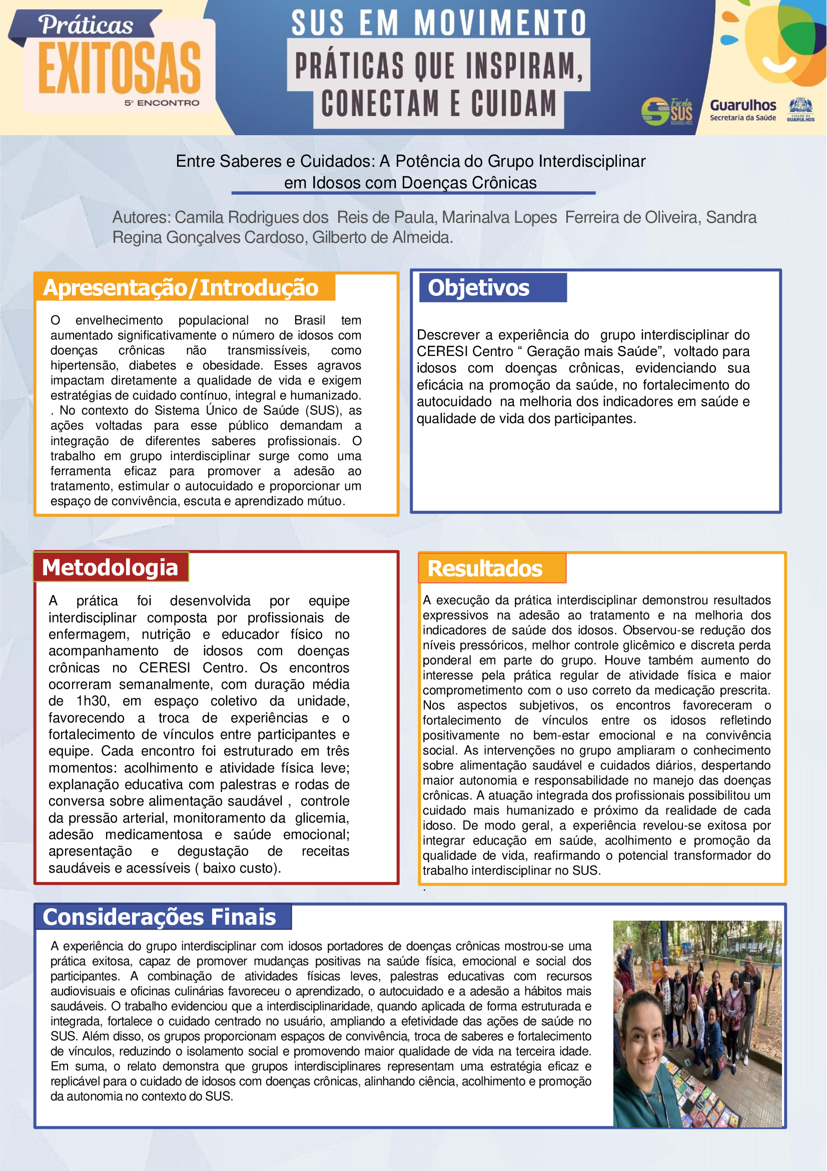 | Entre Saberes e Cuidados: A Potência do Grupo Interdisciplinar em Idosos com Doenças Crônicas | Camila Rodrigues dos Reis de Paula; Marinalva Lopes Ferreira de Oliveira; Sandra Regina Gonçalves Cardoso; Gilberto de Almeida | |