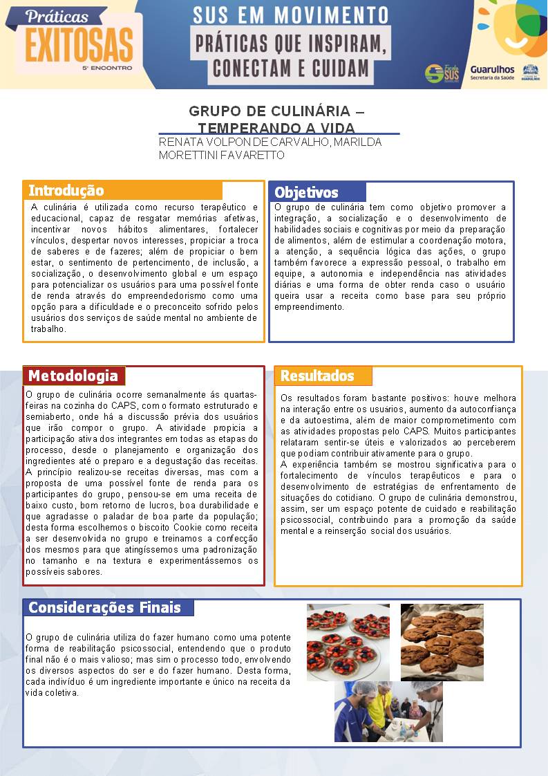 | Grupo de Culinária - Temperando a vida | Renata Volpon de Carvalho; Marilda Morettini Favaretto | |