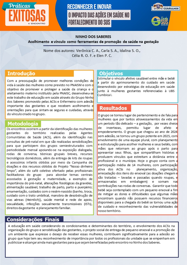 Menção Honrosa Ninho dos Saberes – Acolhimento e vínculo como ferramentas de promoção de saúde na gestação |