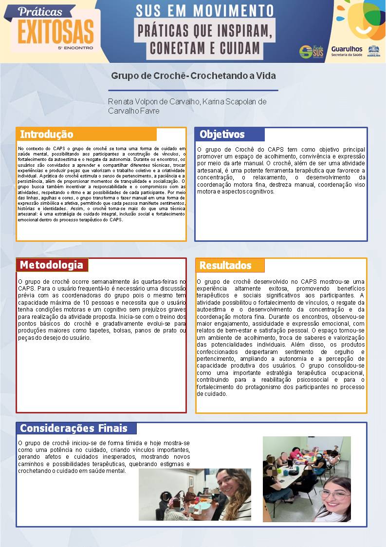| Grupo de Crochê - Crochetando a Vida. | Renata Volpon de Carvalho; Karina Scapolan de Carvalho Favre. | |