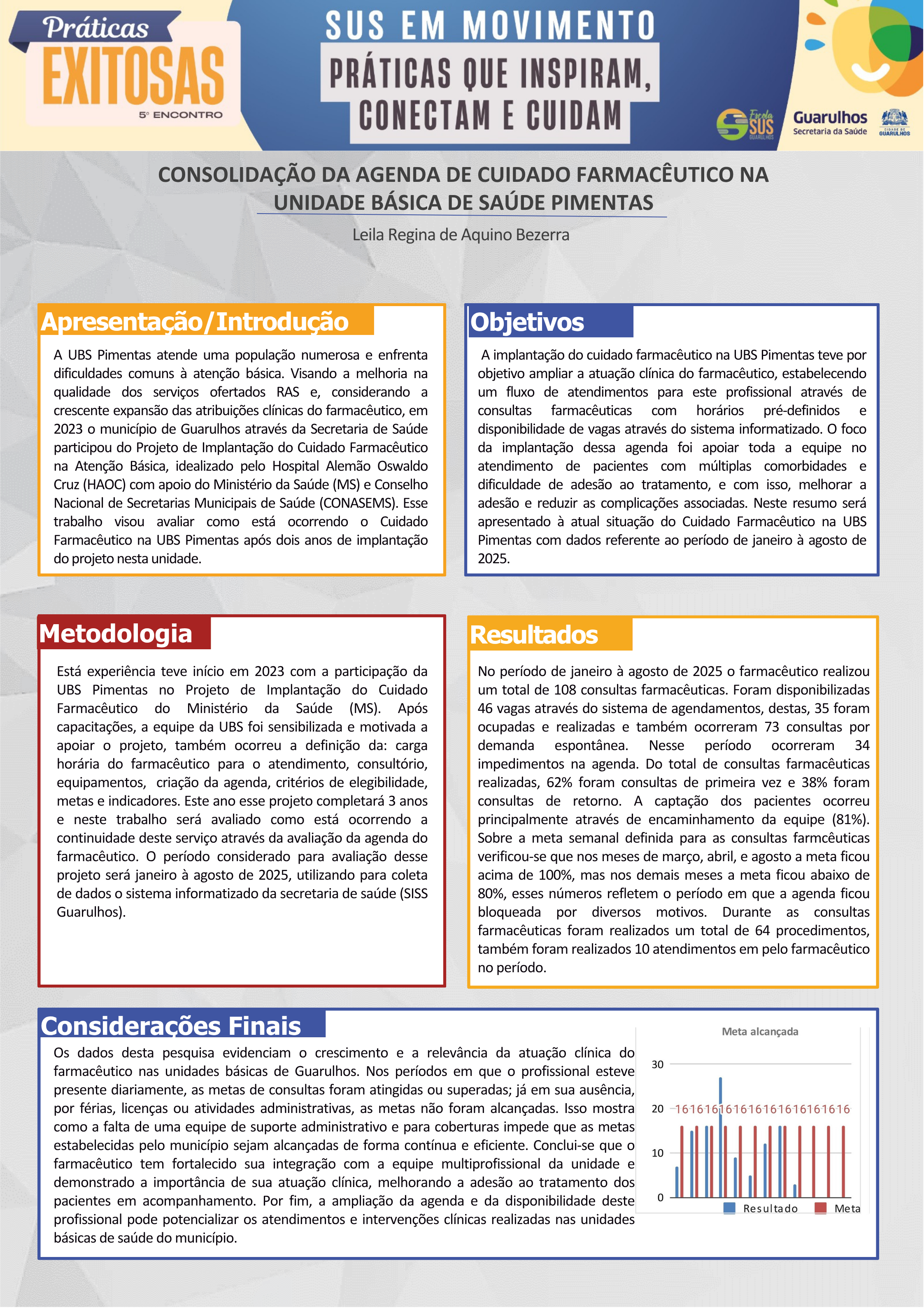 Menção Honrosa CONSOLIDAÇÃO DA AGENDA DE CUIDADO FARMACÊUTICO NA UNIDADE BÁSICA DE SAÚDE PIMENTAS |