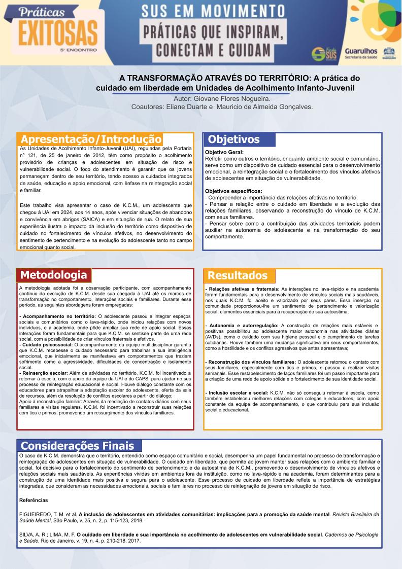 3º Lugar - Prêmio Destaque A TRANSFORMAÇÃO ATRAVÉS DO TERRITÓRIO: A prática do cuidado em liberdade em UAI