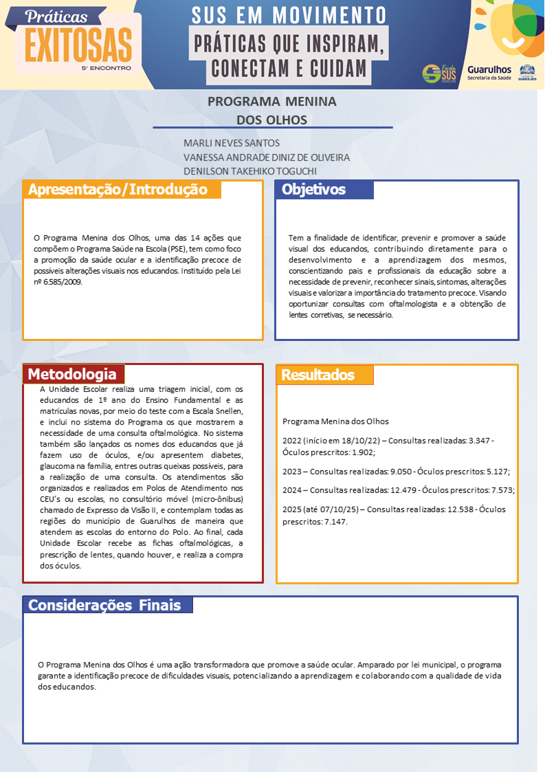 | Programa Menina dos Olhos | Marli Neves Santos; | |