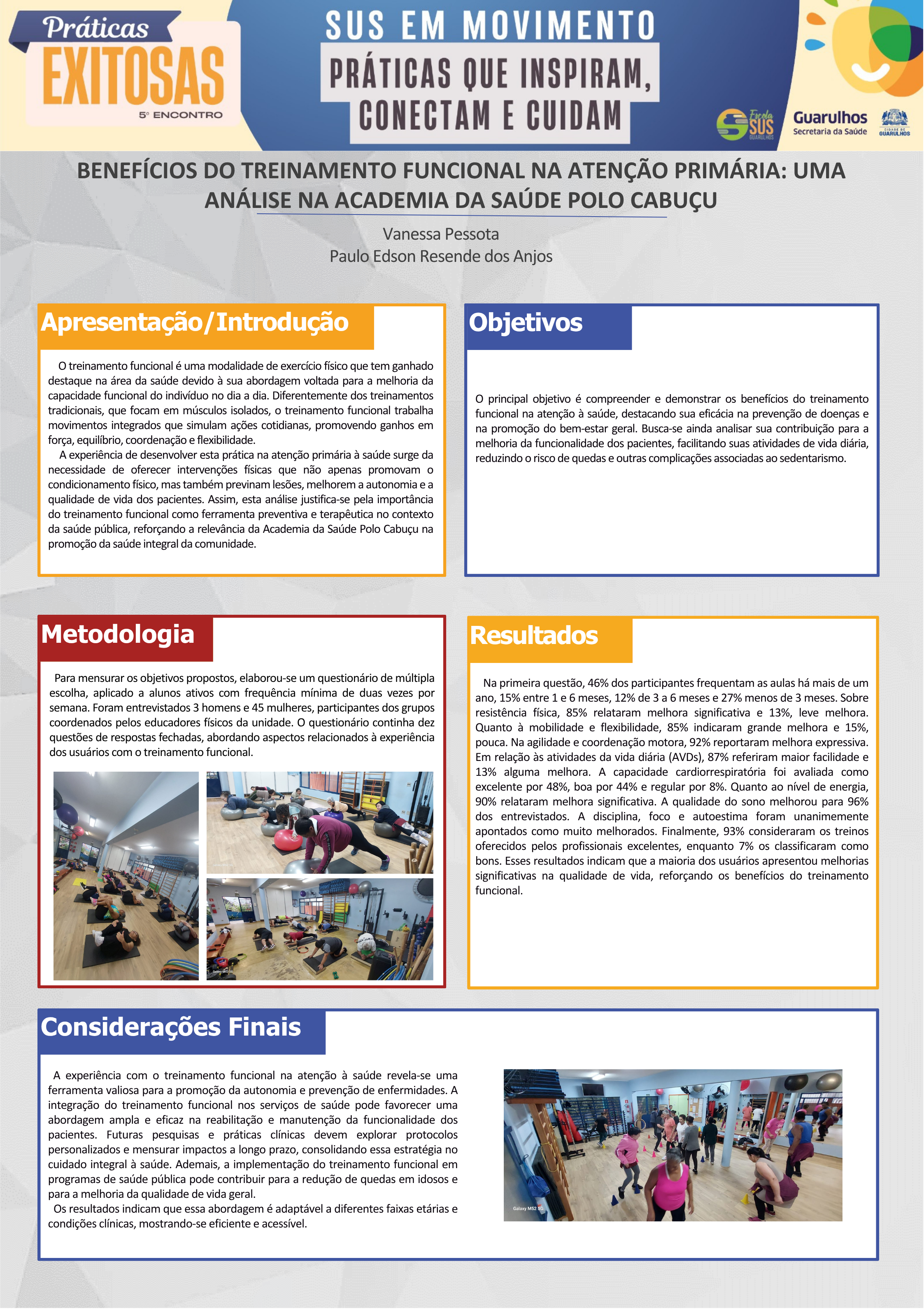 | Benefícios do Treinamento Funcional na Atenção Primária:Uma Análise na Academia da Saúde Polo Cabuçu | Vanessa Pessota; Paulo Edson Resende dos Anjos. | |