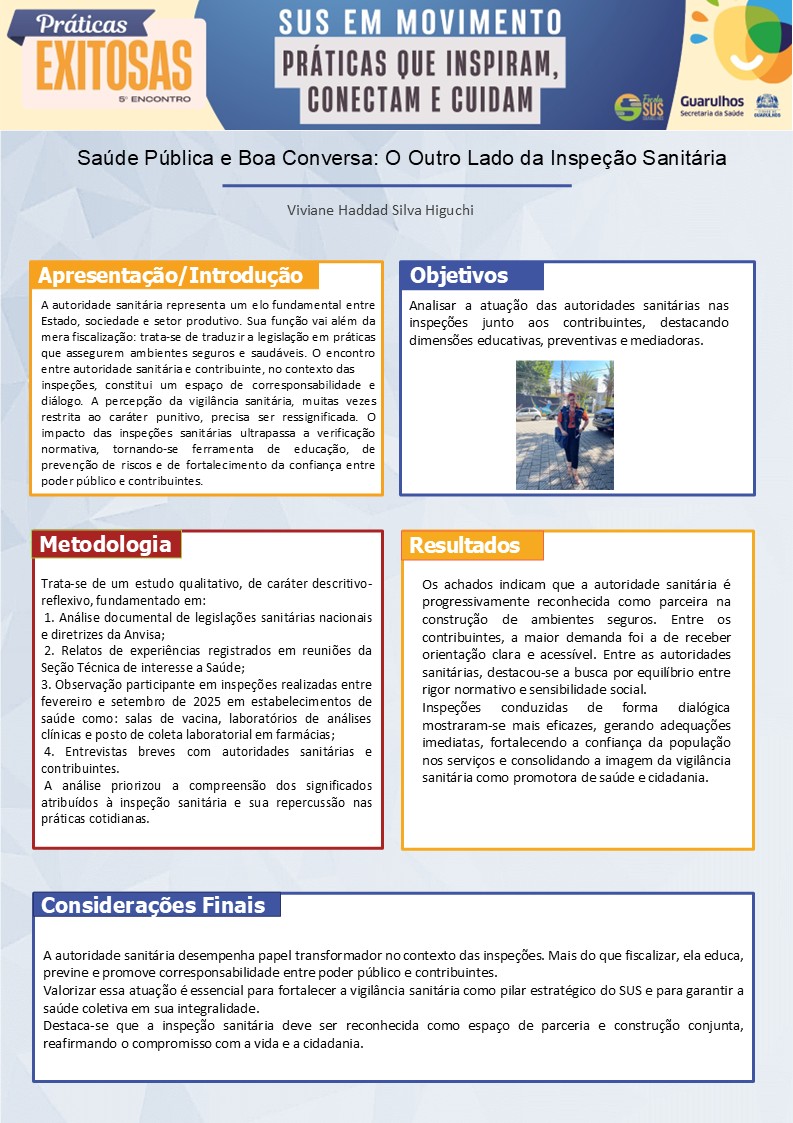 | Saúde Pública e Boa Conversa: o Outro Lado da Inspeção Sanitária | Viviane Haddad Silva Higuchi | |