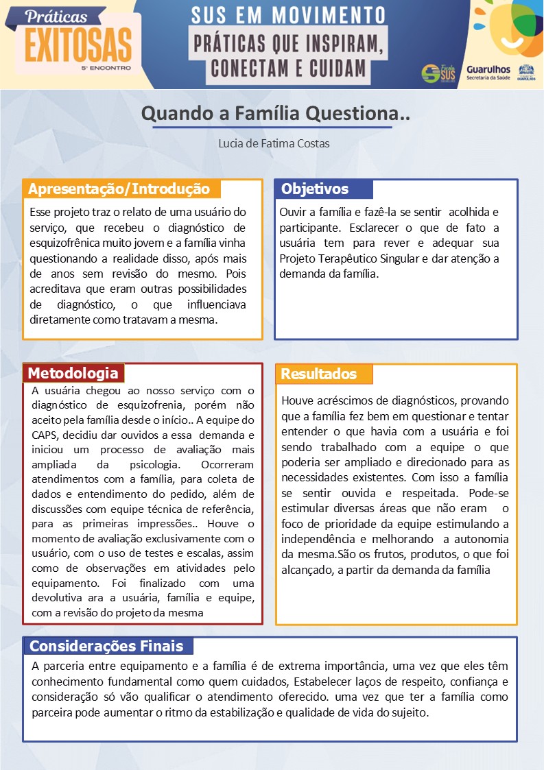 | Quando a família questiona.. | Lucia de Fatima Costa | |